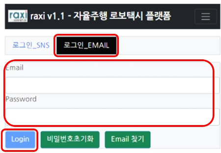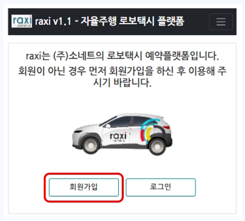 자율주행 로보택시 Raxi 이용 안내 ① 회원가입 및 로그인(Email)